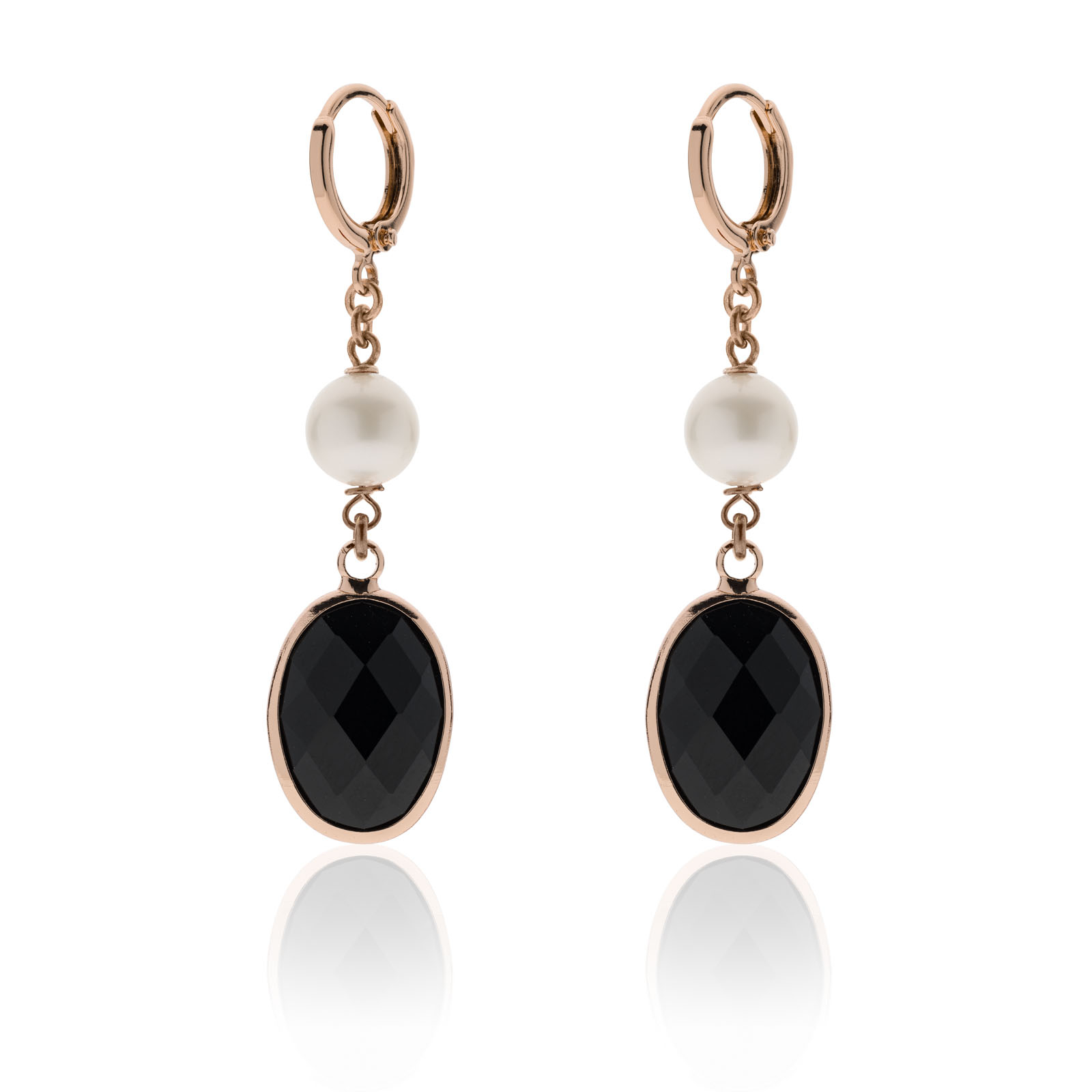 UNOAERRE Orecchini pendenti con pietra nera e perle. Chiusura a monachella. Il design fashion di questi orecchini donna è impreziosito dall’elegante pietra nera e dalla galvanica in golden rose. Un gioiello donna femminile e romantico, perfetto per un tocco extra ad ogni tuo outfit. Scegli un design italiano in linea con le ultime tendenze.